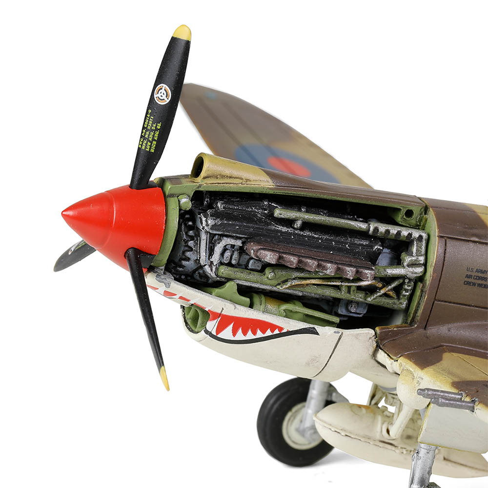 The P-40 Warhawk was a new fighter developed by Curtiss-Wright Corporation, combining the airframe of their earlier P-36 Hawk with an Allison V-1710-19 liquid-cooled engine. In terms of performance, the P-40 was mediocre compared to Axis fighters of the early 1940s. However, its timely production made it the only mass-produced single-seat fighter available when the U.S. officially entered the war in 1941. As a result, the P-40 was not only used by American forces but also extensively supplied to Allied nations, becoming an iconic aircraft of the early war effort. Production ceased in November 1944, with a total of 13,738 units built, ranking it as the third most-produced U.S. fighter of the war.